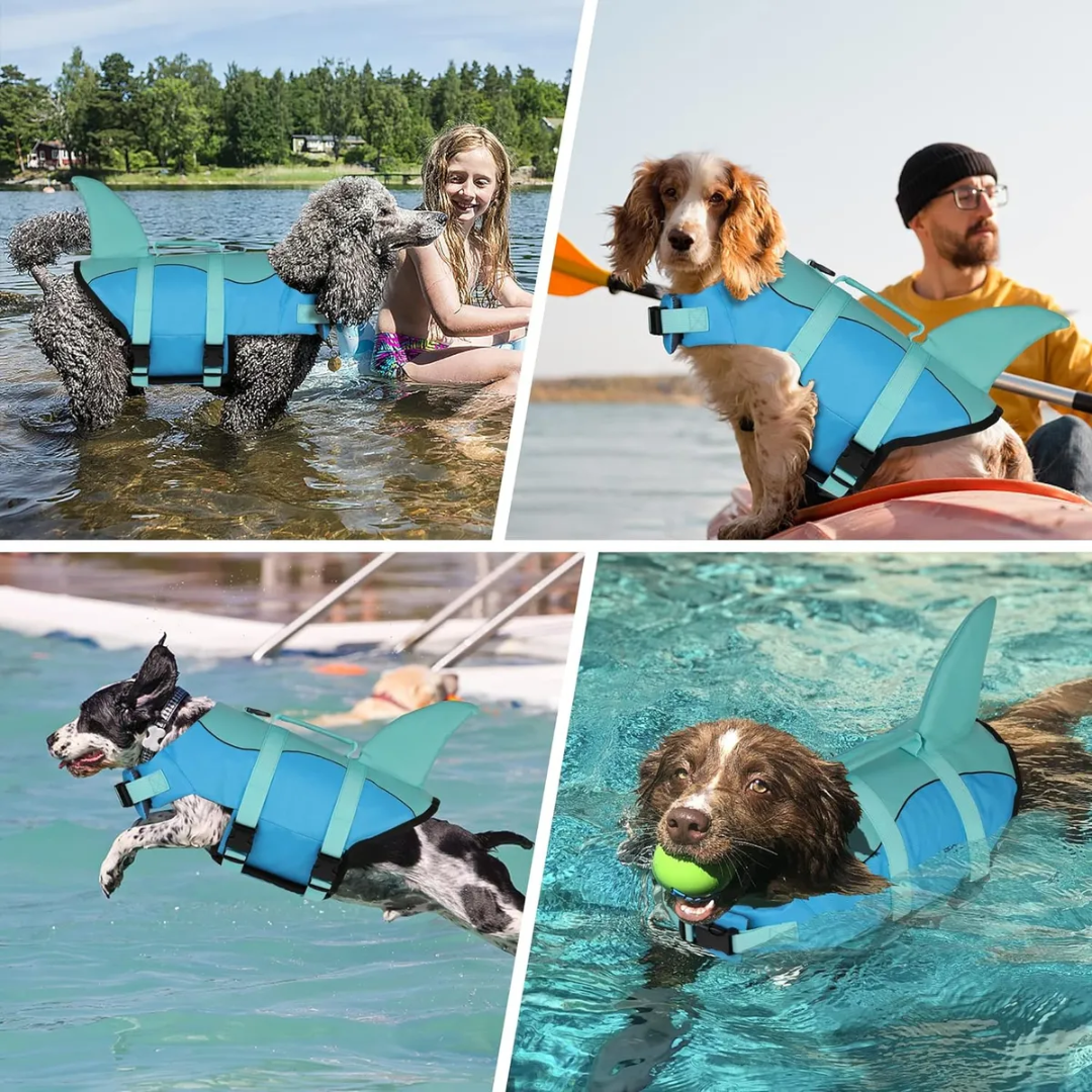 Este chaleco salvavidas con diseño de aleta de tiburón no solo es llamativo, sino también seguro. Está fabricado con tejido de alta calidad y relleno acolchado que proporciona una excelente flotación. Ideal para mantener a tu perro a salvo tanto dentro como fuera del agua.